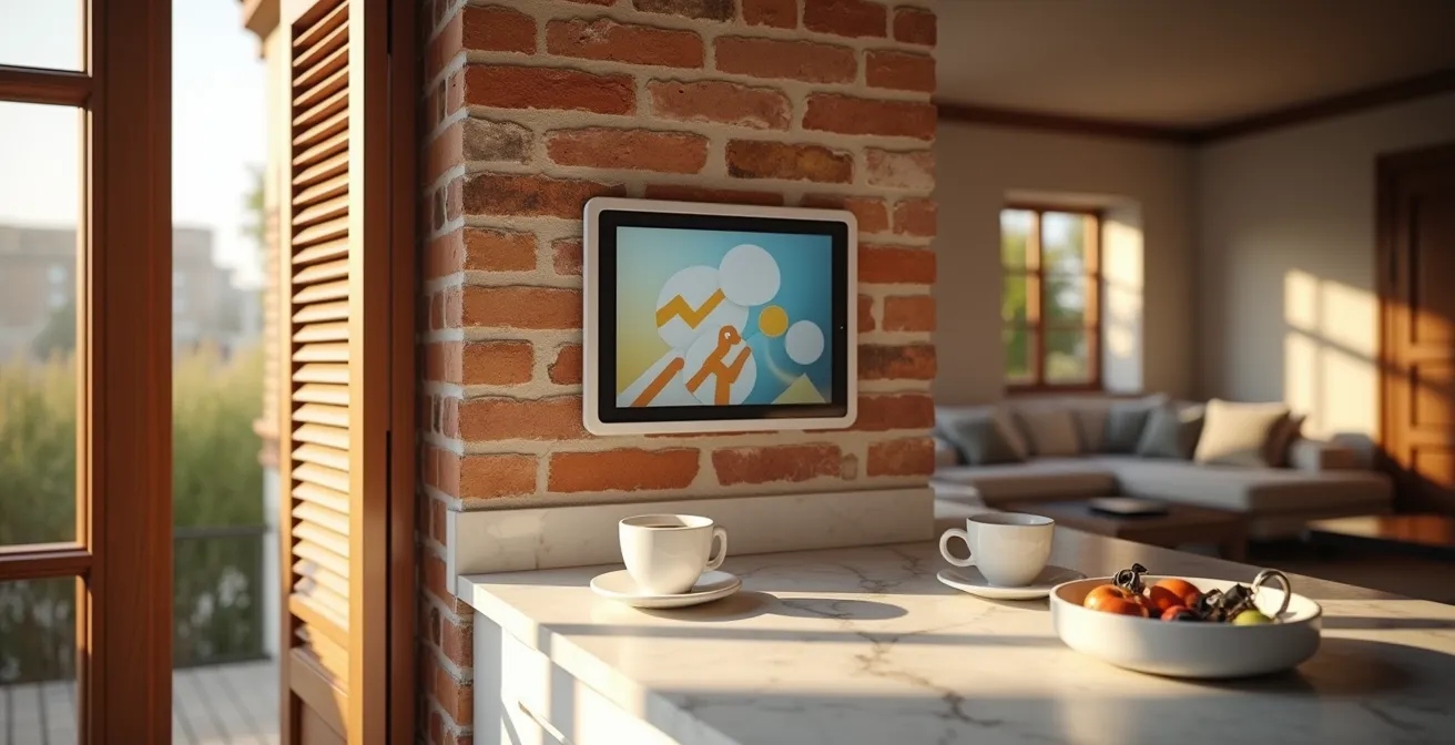 L’installazione non deve essere un compromesso estetico. Un tablet appeso con cavi a vista rovina l’armonia di una parete. La soluzione professionale prevede un’installazione a filo muro, che trasforma il dispositivo in un vero e proprio elemento d’arredo. Questo richiede una pianificazione, preferibilmente durante una ristrutturazione o con un piccolo intervento murario. L’obiettivo è nascondere completamente l’alimentazione per un risultato pulito e sicuro.